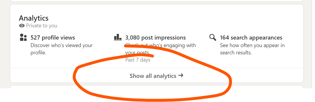 Profile viewers: The total number of people who viewed your profile. Post impressions: The number of times your posts were displayed on screen. Followers: The total number of people that currently follow you (including connections and non-connection followers). Search appearances: The number of times your profile appeared in search results. (THIS IS MY FAVORITE DATA POINT FOR JOB SEEKERS)